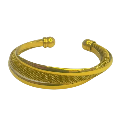 • Polished Ball Endings: The bracelet ends with two large, polished spherical balls, adding a luxurious and precisely designed touch to the open finish