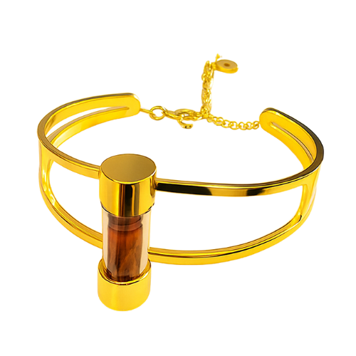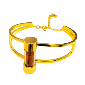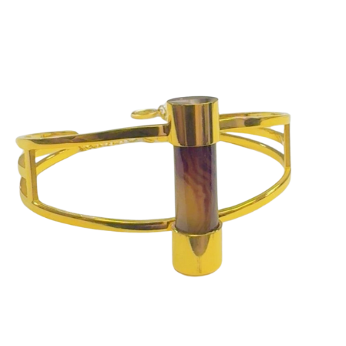 Central Stone: A natural cylindrical stone with unique color variations located in the center of the bracelet, securely set at both ends with polished gold design - serves as the bracelet's focal point